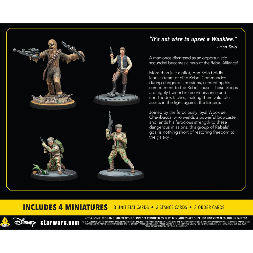 More than just a pilot, Han Solo boldly leads a team of elite Rebel Commandos during dangerous missions, cementing his commitment to the Rebel cause. These troops are highly trained in reconnaissance and unorthodox tactics, making them valuable assets in the fight against the Empire.