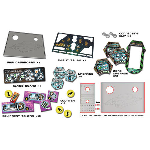 This booster upgrades a single crew with an Enhanced Ship, including a Ship Dashboard and all the customisable zones, upgrades and inserts required. These are ideal for multiplayer campaigns - each set will upgrade one crew beyond the two sets in the Ships of Disrepute Expansion.