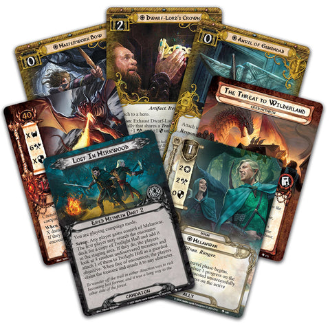 This expansion includes all of the scenarios originally featured in The Wilds of Rhovanion and the Ered Mithrin cycle, now repackaged into one box along with all-new campaign content.