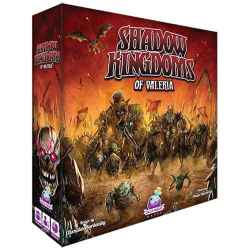 Shadow Kingdoms of Valeria is a dice-drafting worker placement game where each die you take from the game board directly effects the action you take. Build up the right combination of colored dice and send them to battle their strength will determine the amount of victory points you gain. Victory is assured! Buy unique monster cards to build a war machine to demolish your adversaries. When you win a battle, mark it on your campaign board to unlock new abilities on your player board and gain bonuses!