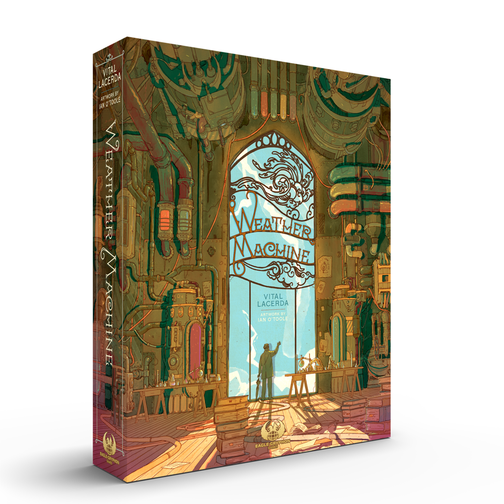 In Weather Machine, you take on the role of one of the Scientists working with Professor Lativ. You must manage your own Laboratory, acquiring Vouchers to spend in other Locations, building Bots, acquiring Chemicals, and increasing the size of your Workshop where you will store resources and build prototypes.