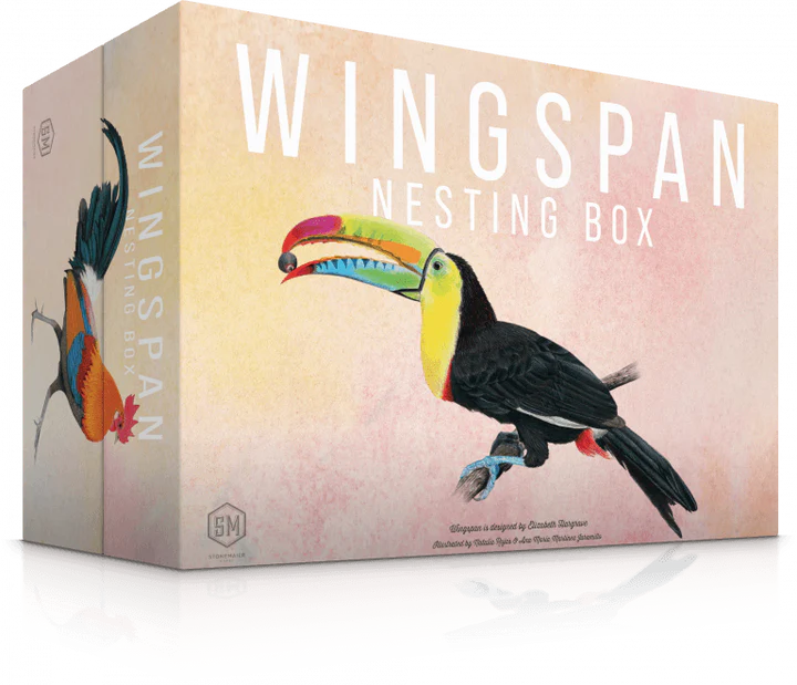 The Nesting Box is an organizer/storage box for all Wingspan content and cards (sleeved or unsleeved). This modular box is designed for all past, present, and future content. It does not include any gameplay content, and it is prepackaged for shipping, so no other items can be added to an order containing a single Nesting Box.