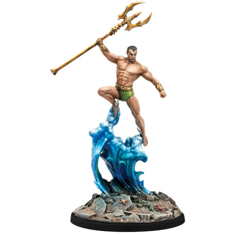 Below the ocean waves lies the fabled kingdom of Atlantis. This sunken nation is ruled by its Prince, its Avenging Son, and its fierce defender: Namor, the Sub-Mariner! Armed with a mystic trident, superhuman strength, and an army of the deep, the Prince of Atlantis ensures his terrestrial foes know the barrier between land and sea should not be idly crossed.
