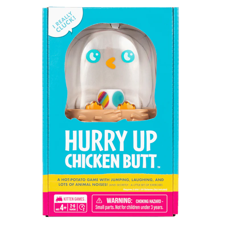 Shake the Chicken to reveal your activity, then quickly perform it before passing the Chicken Shaker to the next player. Don’t get caught holding the Chicken when the timer goes off! This game is fast, funny and it’s different every time. Plus, everyone has an equal chance to win…especially the little ones!