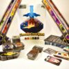In Swordcrafters, players compete to forge the best sword scoring based on length, quality, and magic. Each round each player makes one cut in a grid of sword tiles to create a separation. After separations phase, each player selects one grouping of sword tiles and assembles them into their sword. When there are not enough sword tiles to form a new grid, scoring occurs.