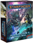 The interstellar perils of Starfinder Alien Archive 2 come alive on your tabletop with this box-busting collection of more than 300 creature pawns for use with the Starfinder Roleplaying Game or any tabletop science fantasy RPG! Printed on sturdy cardstock, each pawn features a beautiful full-color image of an alien from the Starfinder RPG's second collection of interplanetary threats and unique player character races. Each cardboard pawn slots into a size-appropriate plastic base, making it easy to mix with traditional metal or plastic miniatures. With multiple pawns for commonly encountered creatures and a handful of new foes to fight in starship combat, the Starfinder Alien Archive 2 Pawn Box is the best way to ensure you’ve got the perfect characters to bring your Starfinder campaign to life!