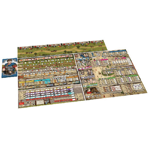 In Hadrian's Wall, players take on the role of a Roman General, placed in charge of constructing a milecastle and bordering wall. Over 6 years (rounds), players will construct their fort and wall, man the defenses, and attract civilians by building services and providing entertainment - all while defending the honor of the Roman Empire from the waring Picts. The player that can accumulate the most Renown, Piety, Valour, and Discipline, whilst avoiding Disdain, will prove to the Emperor they are the model Roman citizen and be crowned Legatus Legionis!