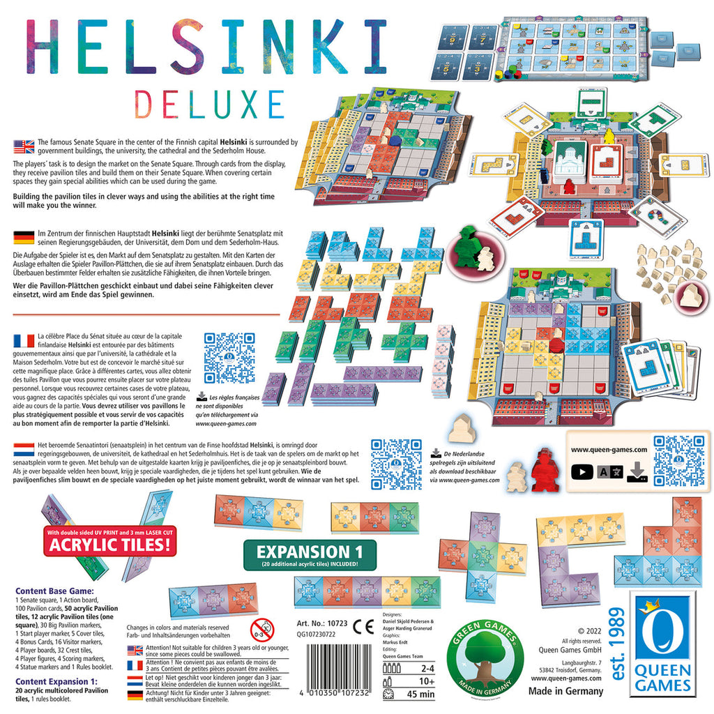 university, the cathedral and the Sederholm House. The players ́ task is to design pavilions across the square to protect pedestrians in the rain. Helsinki is based on the design of Copenhagen by the same design team, but with some added complexity.