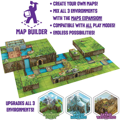 Adventure across the realm exploring caves and slaying monsters in the solo and cooperative play modes. Then, test your tactical prowess against your friends in a free-for-all or team competition. in Tiny Epic Tactics, the choice is yours!